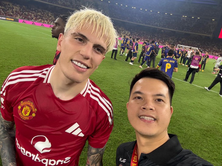 Bác sĩ Trần Huy Thọ chụp ảnh lưu niệm với cầu thủ Man United – Ảnh: FBNV