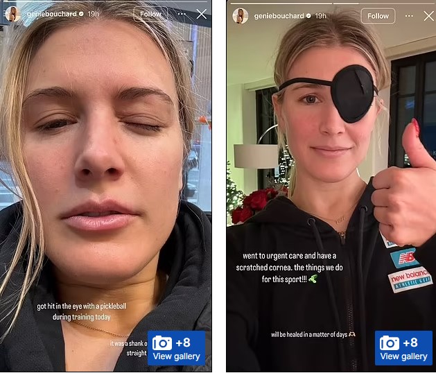 Trên Instagram, Bouchard chia sẻ với 2,3 triệu người theo dõi của mình: “Trong buổi tập hôm nay, tôi bị một quả bóng pickleball đập thẳng vào mắt. Đó là một cú đánh lệch từ vợt của đồng đội, bay thẳng vào mắt tôi. Tôi đã đến phòng cấp cứu và được chẩn đoán bị trầy giác mạc. Những điều chúng tôi phải làm vì môn thể thao này! Nhưng sẽ lành lại sau vài ngày”.