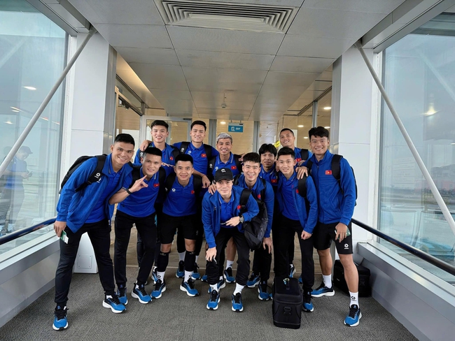 Thầy trò HLV Kim Sang Sik di chuyển từ Phú Thọ lên sân bay quốc tế Nội Bài (Hà Nội) từ sớm để hoàn tất thủ tục đáp chuyến bay sang thủ đô Vientiane (Lào), từ 9h30.