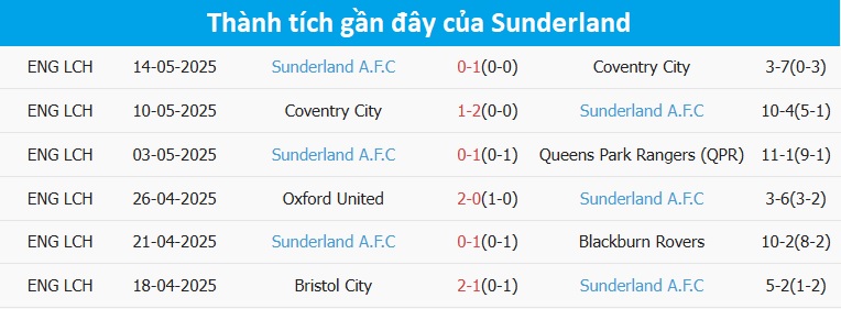 Về phần mình, dù lọt vào trận chung kết nhưng Sunderland đã trải qua hành trình kém thuyết phục. Họ chỉ có thể vượt qua Coventry nhờ bàn thắng ở phút cuối hiệp phụ. Hơn nữa, đội bóng này cũng từng toàn thua 5 vòng đấu cuối ở Championship, một dấu hiệu của sự giảm sút về hiệu suất. Bây giờ, Sunderland sẽ khó tạo được ưu thế nào trước Sheffield United trong một trận đấu chặt chẽ.