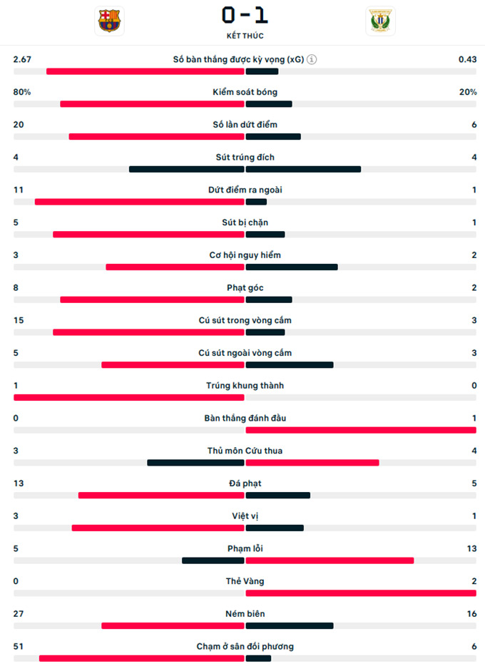 Kết quả Barca 0-1 Leganes: Địa chấn tại Catalunya