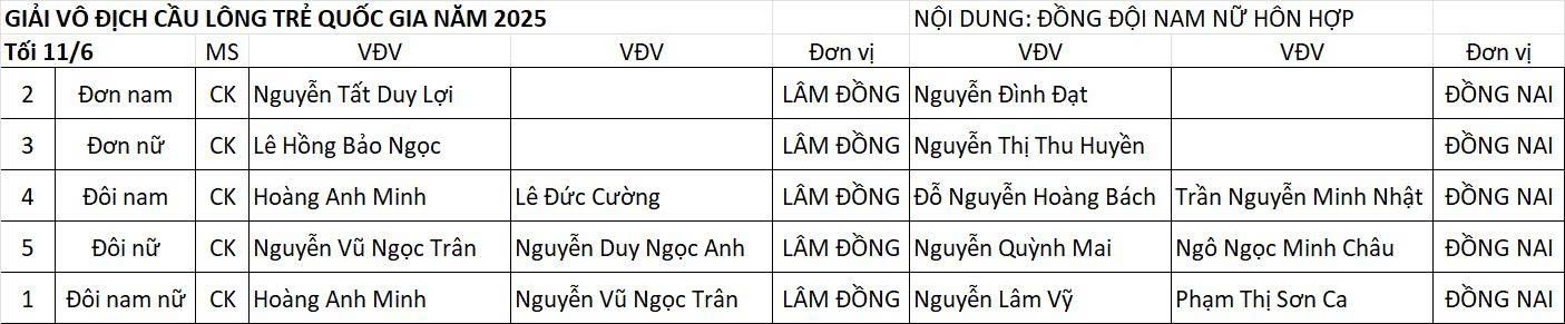 Lịch thi đấu Giải vô địch cầu lông trẻ quốc gia năm 2025 mới nhất ngày 13/06