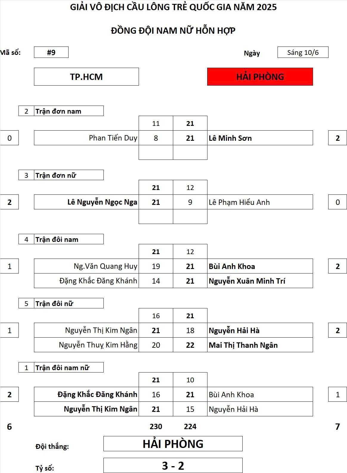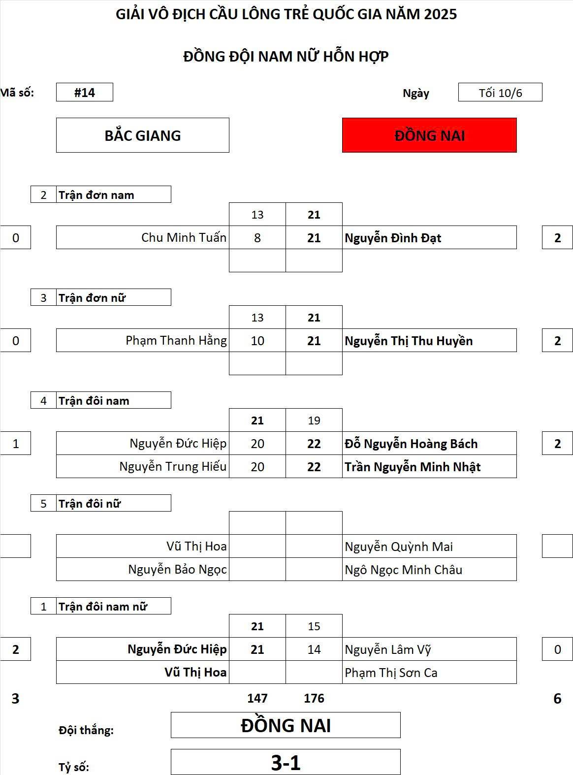 Lịch thi đấu Giải vô địch cầu lông trẻ quốc gia năm 2025 mới nhất ngày 14/06