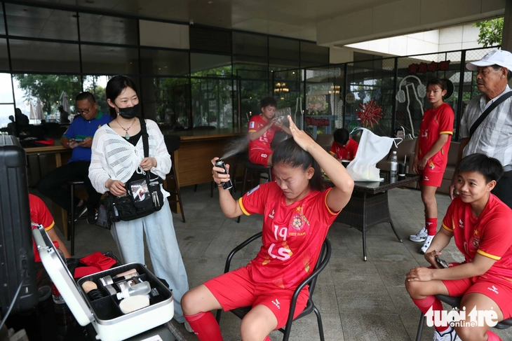 Với nhiều cầu thủ nữ vốn quen với việc tập luyện và thi đấu, trang điểm là điều hiếm khi. Nên khi được nhân viên trang điểm của ban tổ chức giúp đánh son môi, đánh phấn hay chỉnh lại tóc, nhiều người không khỏi ngượng ngùng.