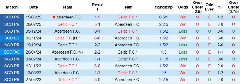 Về thành tích đối đầu trực tiếp, trong 10 lần chạm mặt gần nhất giữa hai đội trên mọi đấu trường từ năm 2023 đến 2025, Aberdeen đang lép vế hoàn toàn khi không giành được chiến thắng nào, hòa 3 và thua tới 7 trận trước Celtic.