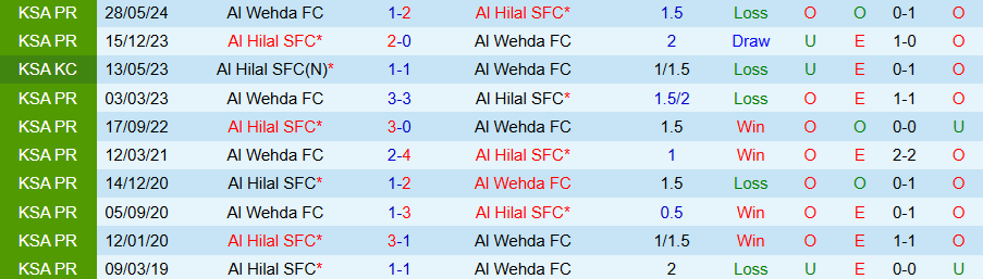 Kết quả đối đầu Al Hilal vs Al Wehda trước đây