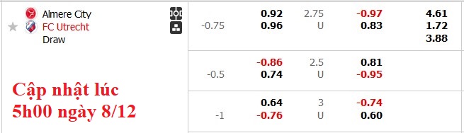 Với những gì đã thể hiện từ đầu mùa giải, việc FC Ultrecht được đánh giá cao hơn ở trận đấu này cũng không có gì ngạc nhiên. Họ thắng kèo 7/14 trận từ đầu mùa, trong khi Almere chỉ có 4 trận, thấp nhất Eredivisie.