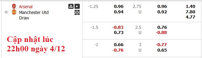 Bất chấp việc MU đang chơi vào form, khi phải làm khách tại Emirates, họ vẫn bị đánh giá thấp hơn rất nhiều. Arsenal có mức chấp lên tới 1 1/4. Nên nhớ, đội cửa trên ở cặp đấu này thắng kèo tới 5/6 trận đối đầu gần nhất.