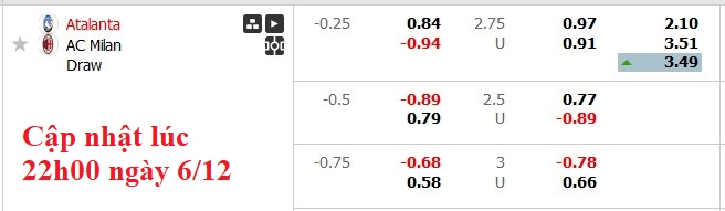 Soi kèo Châu Á Atalanta vs AC Milan