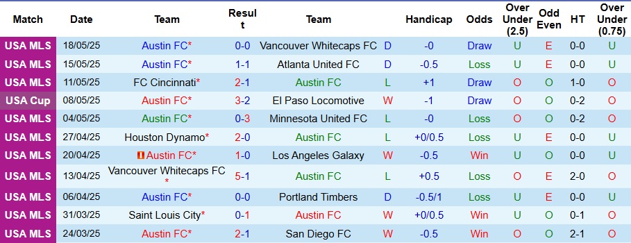 Được thi đấu trên sân nhà, Austin FC được đánh giá là cửa trên ở trận đấu này. Tuy nhiên, màn chuẩn bị của họ khiến khán giả thực sự lo lắng. Trong 6 trận gần nhất, Austin FC chỉ thắng có 1 nhưng thua tới 3. Trên sân nhà, Austin FC chỉ thắng có 1 trong 4 trận vừa qua. Đó là lý do mà trận đấu này hứa hẹn sẽ rất khó lường.