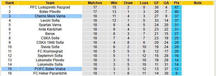 Botev Vratsa đứng ở vị trí thứ 15 trong số 16 đội tham dự giải VĐQG Bulgaria với chỉ 12 điểm sau 18 trận. Cherno More Varna xếp ở vị trí thứ 3 trên BXH với 37 điểm sau 18 trận.