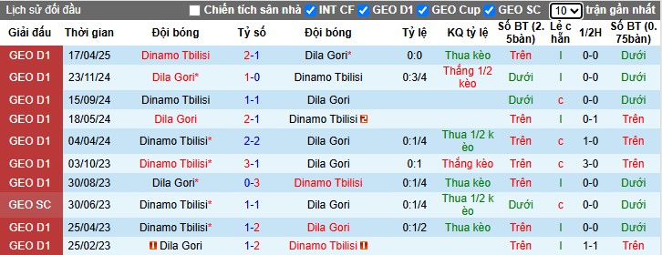 4 kèo handicap gần nhất của Dila Gori, họ đã thắng tới 3 lần. Còn với Dinamo Tbilisi, họ lại thất bại ở 2/3 kèo gần nhất.