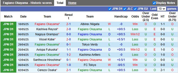 Fagiano Okayama thắng kèo châu Á