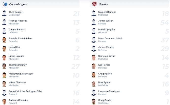 Phân tích dữ liệu có sẵn, bao gồm cả thành tích gần đây và số liệu thống kê của cầu thủ, cho thấy kết quả có nhiều khả năng xảy ra nhất của trận đấu này là Copenhagen thắng với xác suất là 65,59%. Một trận hòa có xác suất là 19,5% và một chiến thắng cho Hearts có xác suất là 14,86%.