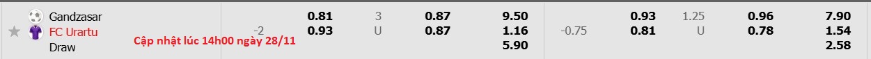 Nhà cái đang đánh giá FC Urartu khá cao trận này dù thi đấu xa nhà, trong trong hai trận gần nhất đội chủ nhà đều thua với cách biệt 3 và 5 bàn nên có thể đội khách sẽ là chọn lựa tốt cho các nhà đầu tư ở kèo châu Á.
