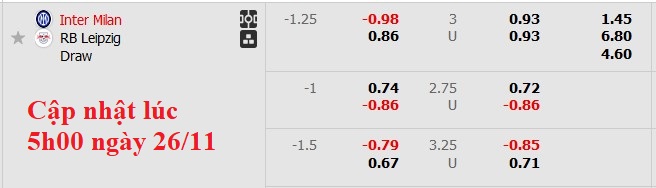 Soi kèo Châu Á Inter Milan vs Leipzig