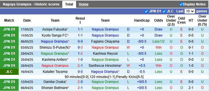 Những màn thể hiện không tốt từ đầu mùa đã đẩy Nagoya Grampus xuống nhóm đua trụ hạng của giải VĐQG Nhật Bản 2025. Tính tới thời điểm giải đấu này sắp kết thúc giai đoạn lượt đi, đội bóng này đang đứng thứ 18, còn kém vị trí an toàn 1 điểm. Trong 10 lần ra sân gần nhất trên mọi đấu trường, Nagoya Grampus chỉ thắng 2, hòa 4 và nhận về 4 thất bại. Họ thắng 3, hòa 2 và thua 2 sau 7 trận sân nhà từ đầu mùa.