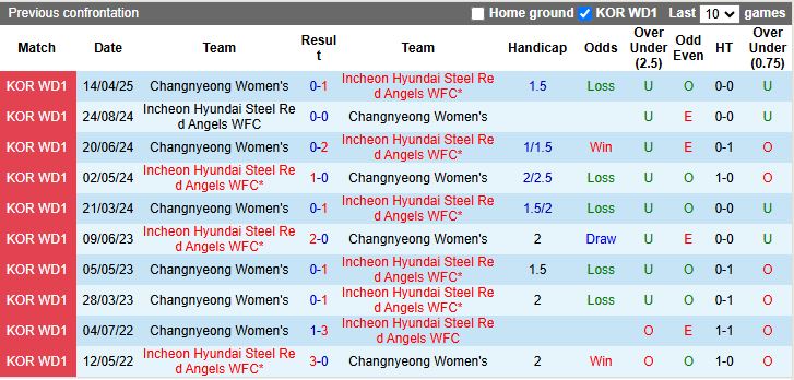 Nữ Incheon Hyundai Steel Red Angels được dự đoán sẽ có thắng lợi dễ dàng trước Nữ Changnyeong. Trận đấu này dễ có ít cả bàn thắng và thẻ phạt.