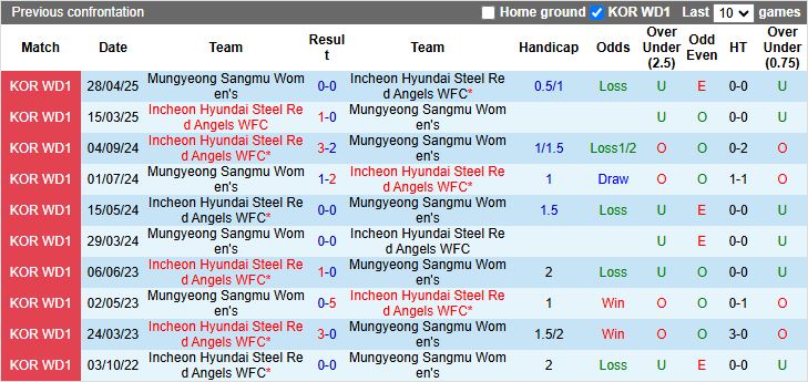 Phong độ, lịch sử đối đầu Nữ Incheon Red Angels và Nữ Mungyeong Sangmu