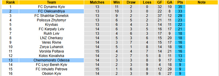 Chính xác hơn, Odessa vừa thua cả 3 lượt trận mới đây và lúc này, họ chỉ có được 3 trận thắng, hòa 3 và thua tới 8 lần sau 14 trận đã đá. Tính riêng sân khách, họ thua tới 4 và chỉ hòa 1 lần sau 5 trận đấu tại giải VĐQG mùa này. Với phong độ hiện tại, NHM không bất ngờ nếu Odessa tiếp tục nhận một thất bại trước Oleksandriya.