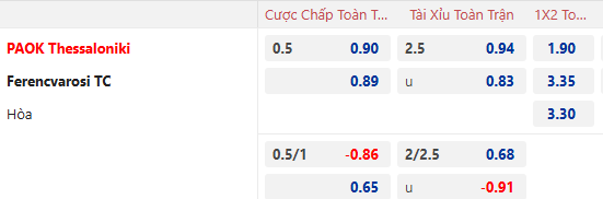 Dự đoán tỷ lệ bóng đá, soi kèo PAOK vs Ferencvarosi