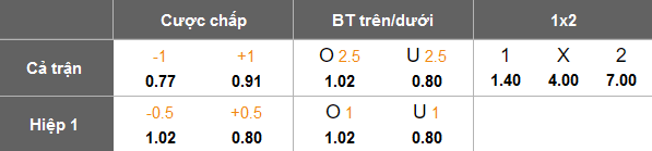– Tỷ lệ châu Á cả trận (0:1 1/4)
