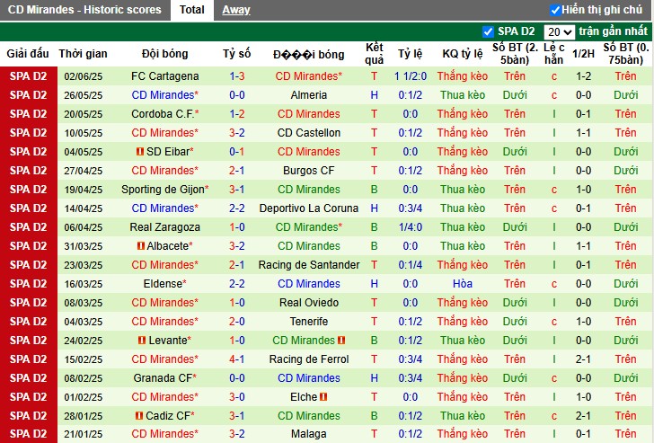 5 lần mở kèo gần nhất, Racing Santander chỉ thắng đúng 1 lần. Còn với Mirandes, họ chắc chắn là điểm đến đáng tin hơn khi họ thắng 5/6 kèo handicap gần nhất.