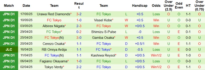 Bên phía đối diện, FC Tokyo với 19 điểm sau 16 trận đã đấu đang có được vị trí thứ 16 trên bảng xếp hạng J1 League mùa giải 2025, kém đội đứng thứ 15 là Tokyo Verdy chỉ 1 điểm và tạo ra khoảng cách 2 điểm so với nhóm cầm đèn đỏ nhưng vẫn còn 1 trận chưa đá.