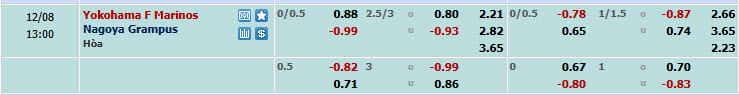 Yokohama F. Marinos đang có phong độ cao khi thắng cả 6 trận đấu vừa rồi tại mọi đấu trường tham dự. Nagoya Grampus thua tới 4 và chỉ hòa 2 lần ở 6 trận đấu gần nhất và không phải lựa chọn an toàn trong mắt các nhà đầu tư châu Âu.