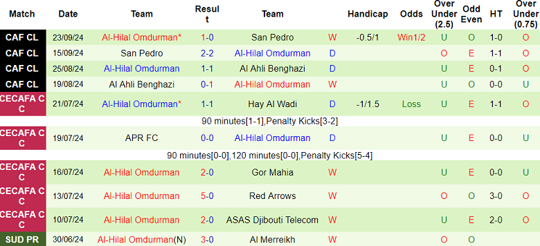 – Thống kê 10 trận gần nhất của Al-Hilal Omdurman