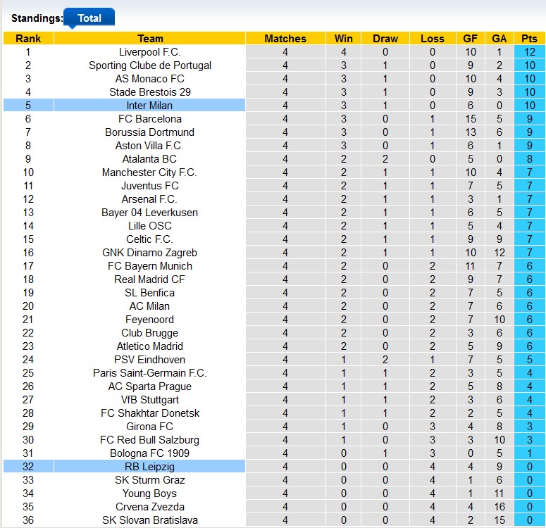 Inter Milan rõ ràng được đánh giá cao hơn rất nhiều so với Leipzig ỏ trận đấu này, đội thậm chí còn chưa có bất cứ điểm số nào, nằm trong nhóm 5 đội chưa có điểm sau 4 lượt trận.
