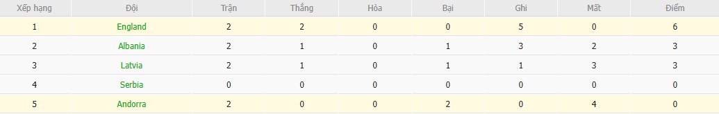 Phong độ và thống kê đối đầu Andorra vs Anh