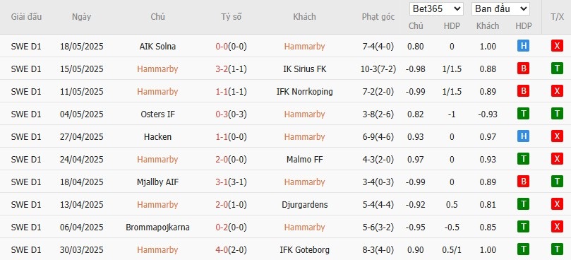 Bước vào cuộc đối đầu này, Hammarby đang sở hữu chuỗi phong độ ấn tượng. Theo đó, 6 trận gần nhất mà đội bóng này ra sân, họ đều không phải nhận thất bại. Ở cuộc đối đầu sắp tới, Hammarby đang được đánh giá cao hơn đối thủ. Vì thế, họ sẽ là một điểm đến đáng tin ở kèo góc hiệp 1.