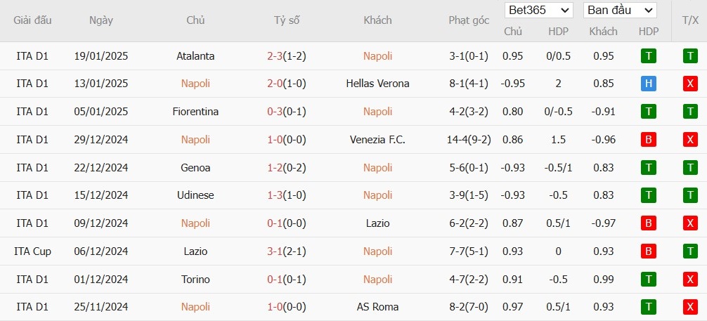 Với phong độ ấn tượng, Napoli đang được đánh giá cửa trên ở kèo góc hiệp 1 trận này. Nên nhớ, họ đã thắng ở 6 trận ra quân gần nhất của mình. Ở kèo góc hiệp 1 những trận gần đây, Napoli nhìn chung cũng cho thấy thống kê ổn. Theo đó, 2 trận gần nhất mà Napoli ra sân, họ đều thắng góc hiệp 1. Vì vậy, điểm đến Napoli hoàn toàn khả thi.