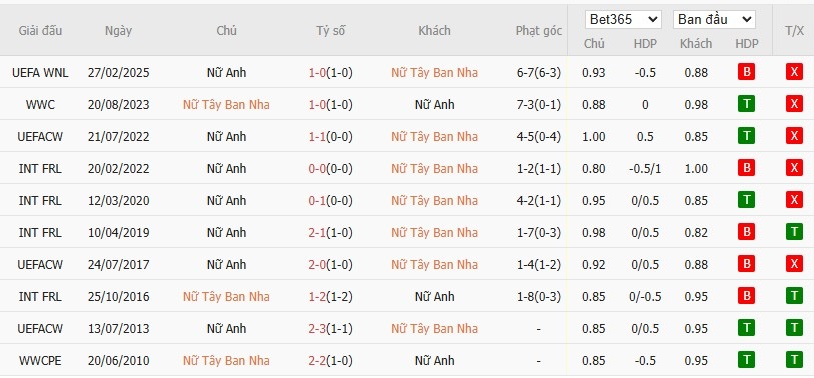 Soi kèo phạt góc Nữ Tây Ban Nha vs Nữ Anh