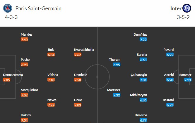 Phong độ và thống kê đối đầu PSG vs Inter Milan